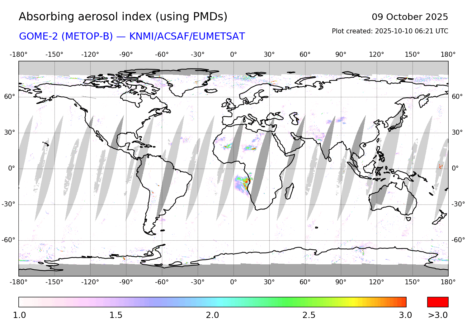 Absorbing Aerosol Index 09 October 2025