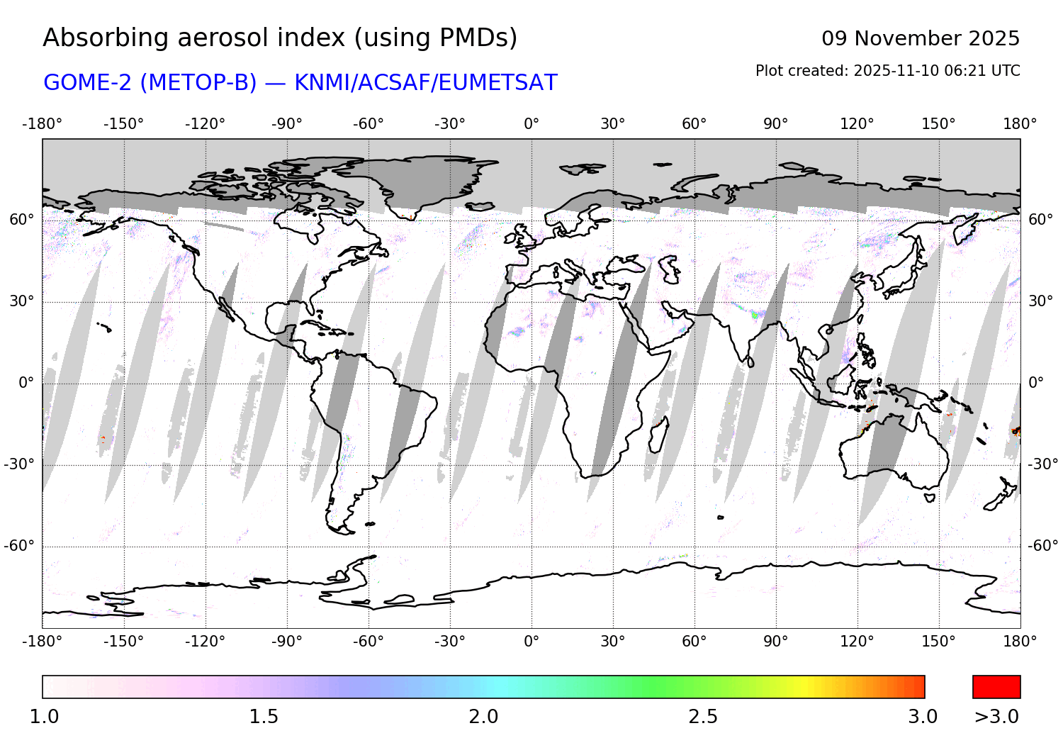 Absorbing Aerosol Index 09 November 2025