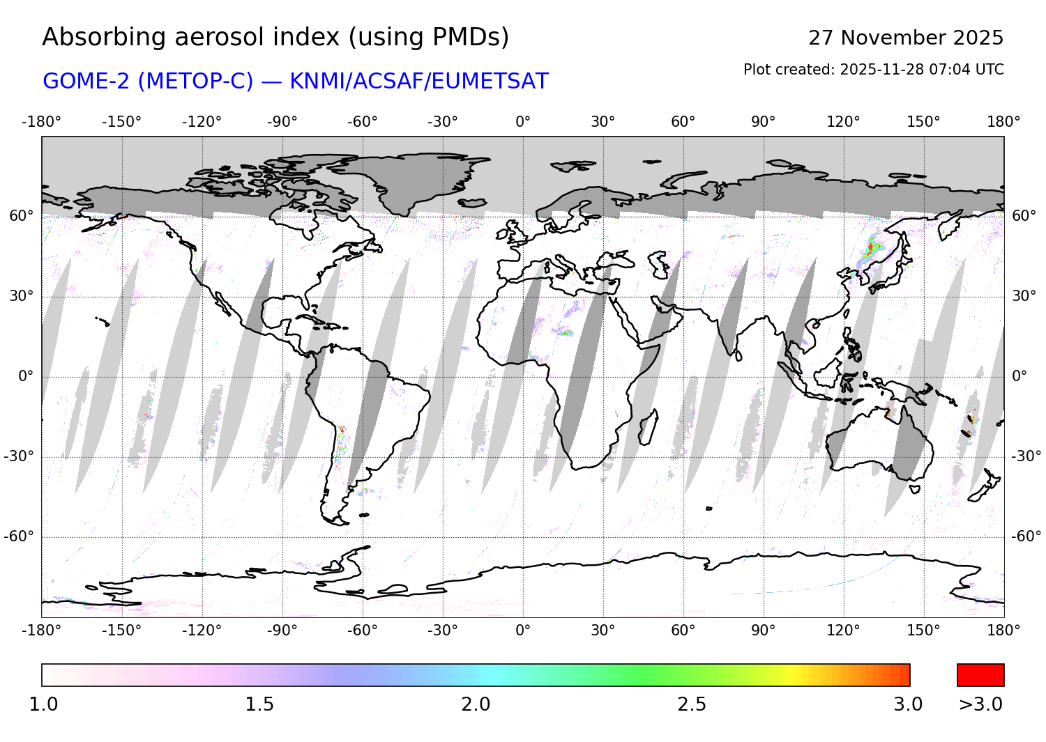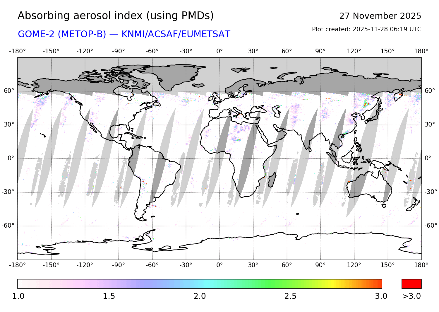Absorbing Aerosol Index 27 November 2025