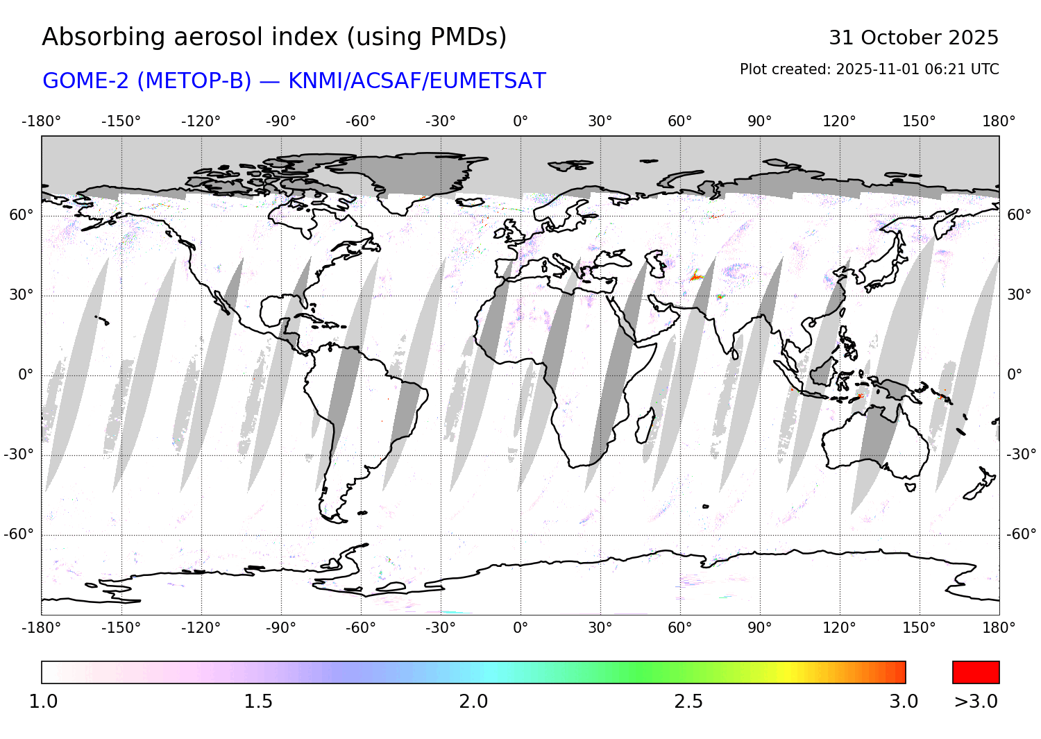 Absorbing Aerosol Index 31 October 2025