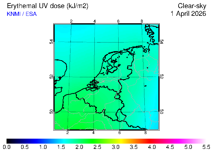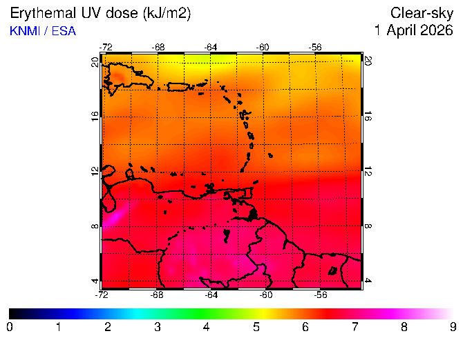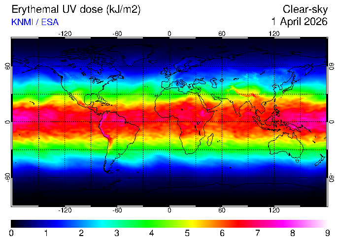 Clear-sky UV index:   erythemal