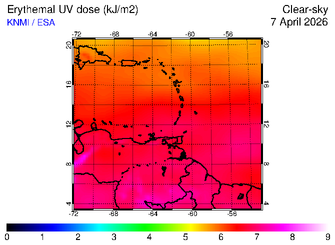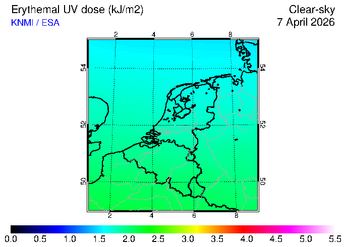 Clear-sky UV index:   erythemal