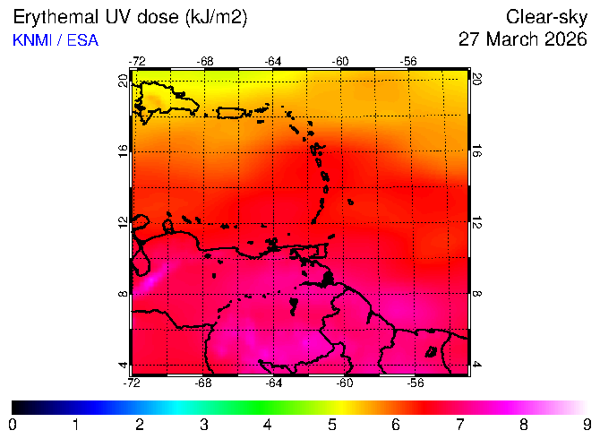 Clear-sky UV index:   erythemal