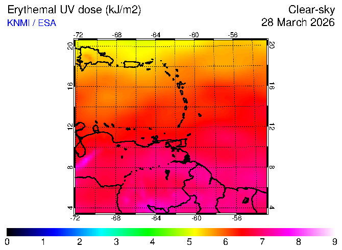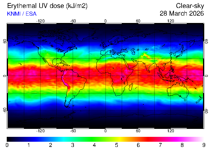 Clear-sky UV index:   erythemal