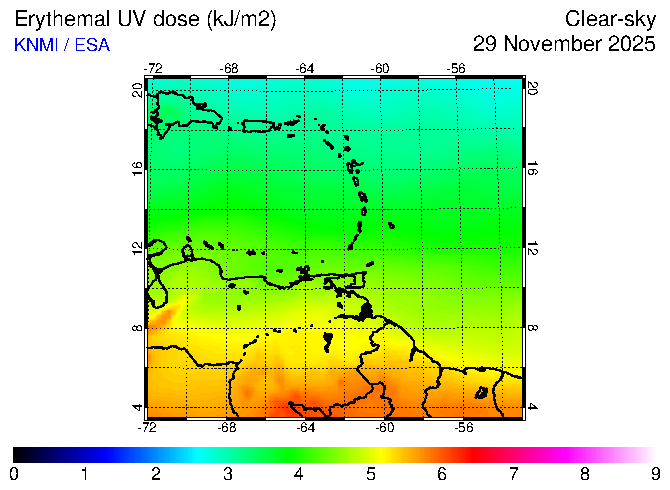 Clear-sky UV index:   erythemal