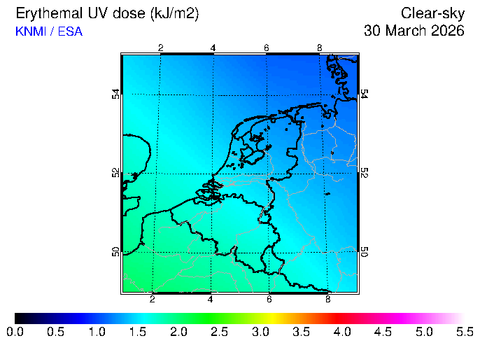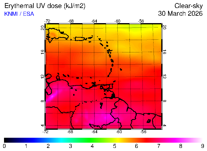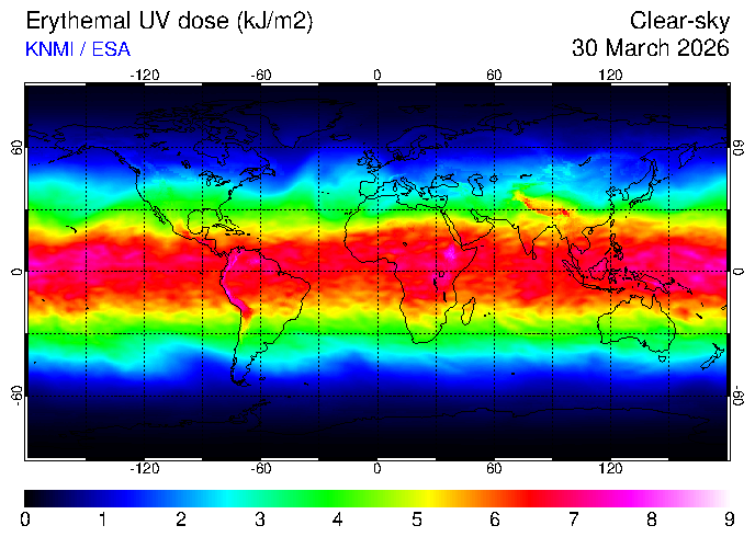 Clear-sky UV index:   erythemal