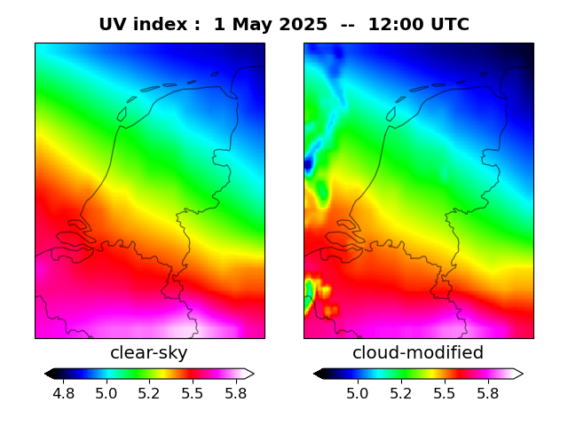 UV index for De Bilt UV index map at 1200 UTC