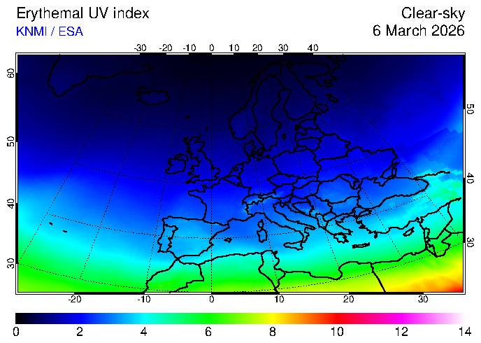 Clear-sky UV index:   erythemal