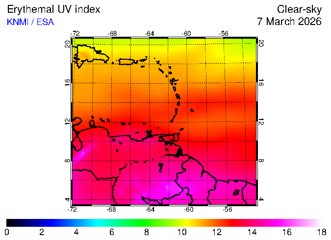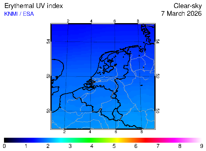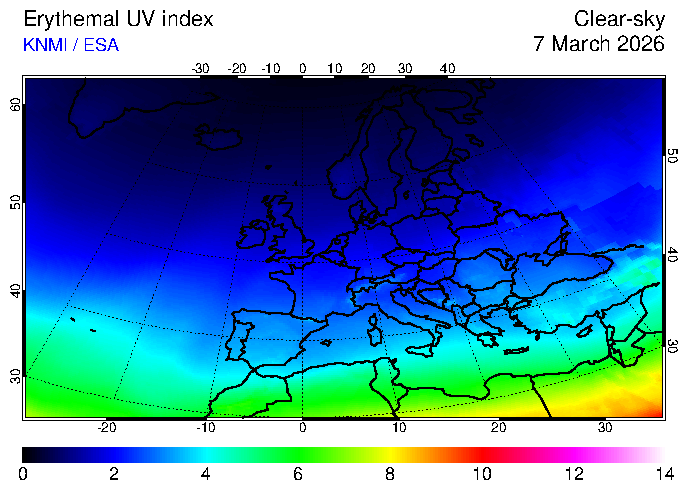 Clear-sky UV index:   erythemal