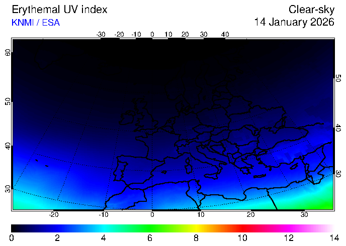 UV index of 14 January 2026 UV index of 14 January 2026