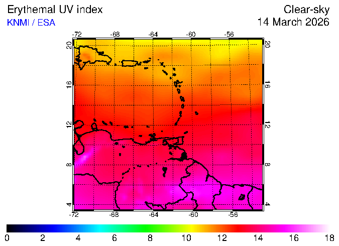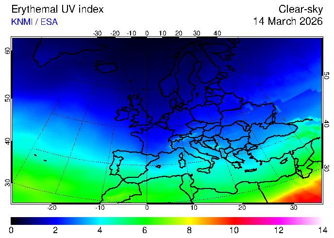 UV index of 14 March 2026 UV index of 14 March 2026