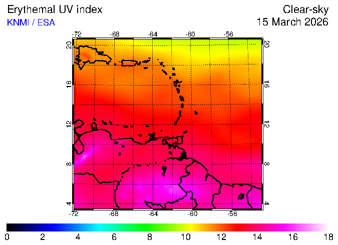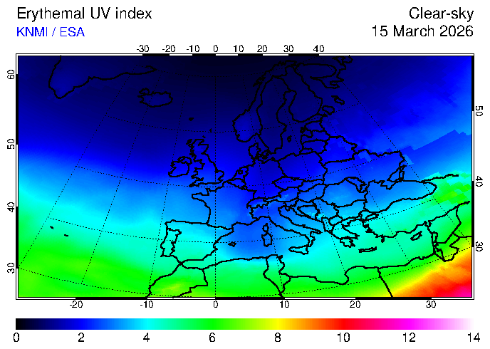 Clear-sky UV index:   erythemal