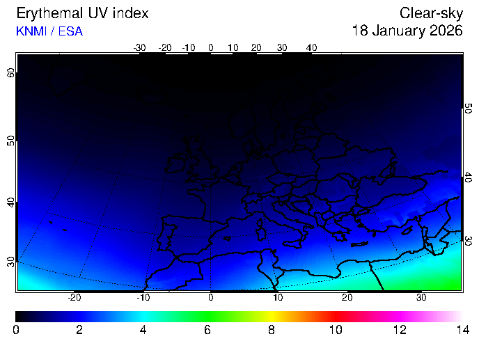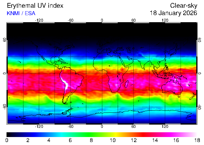 UV index of 18 January 2026 UV index of 18 January 2026