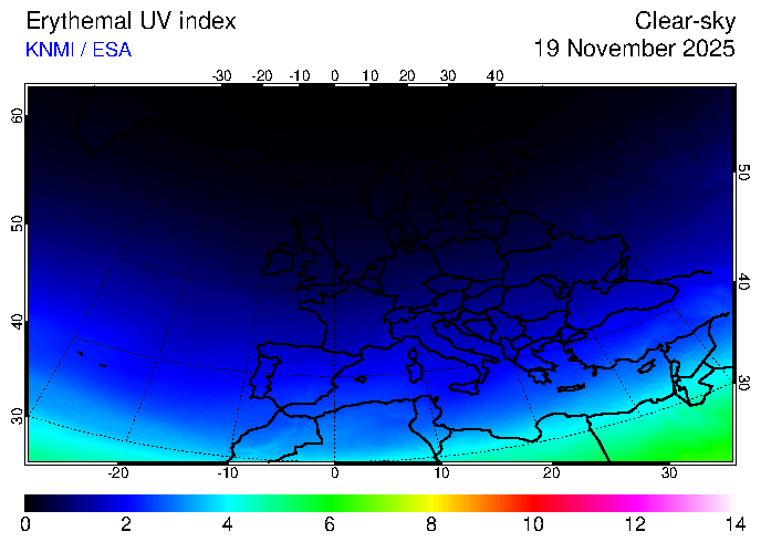 Erythemal UV index of 19 November 2025