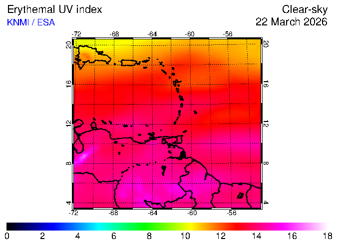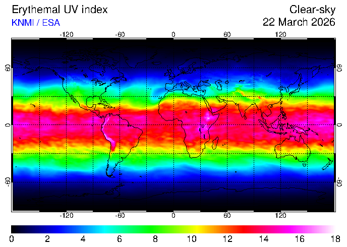 Clear-sky UV index:   erythemal