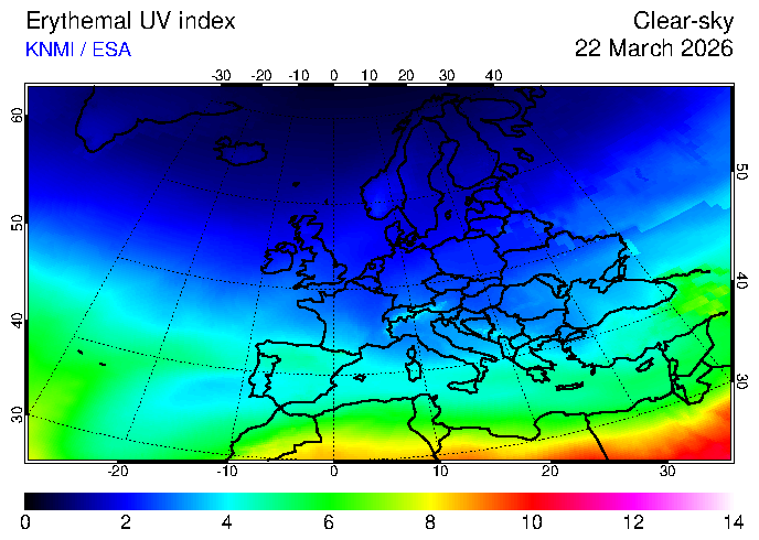 UV index of 22 March 2026 UV index of 22 March 2026