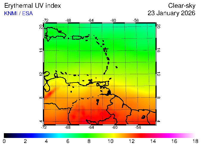 Clear-sky UV index:   erythemal