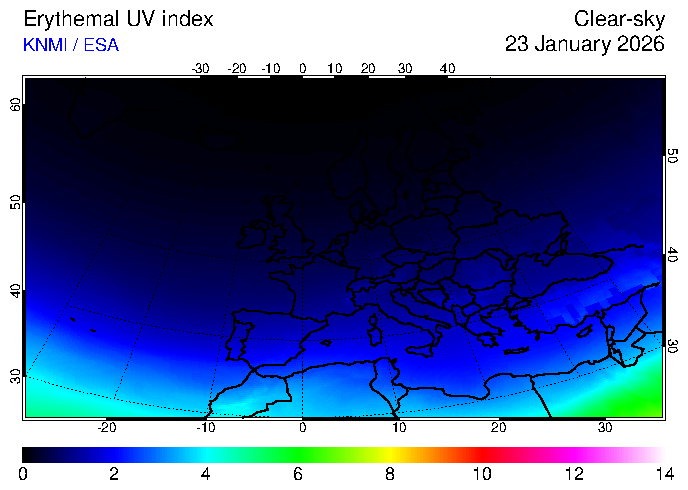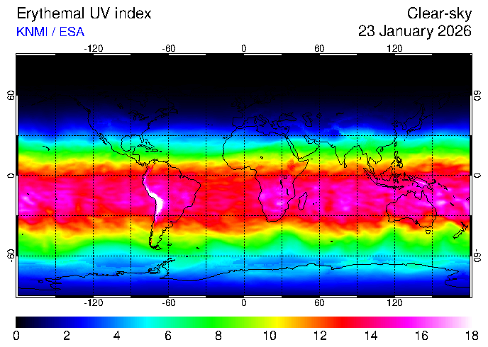 Erythemal UV index of 23 January 2026