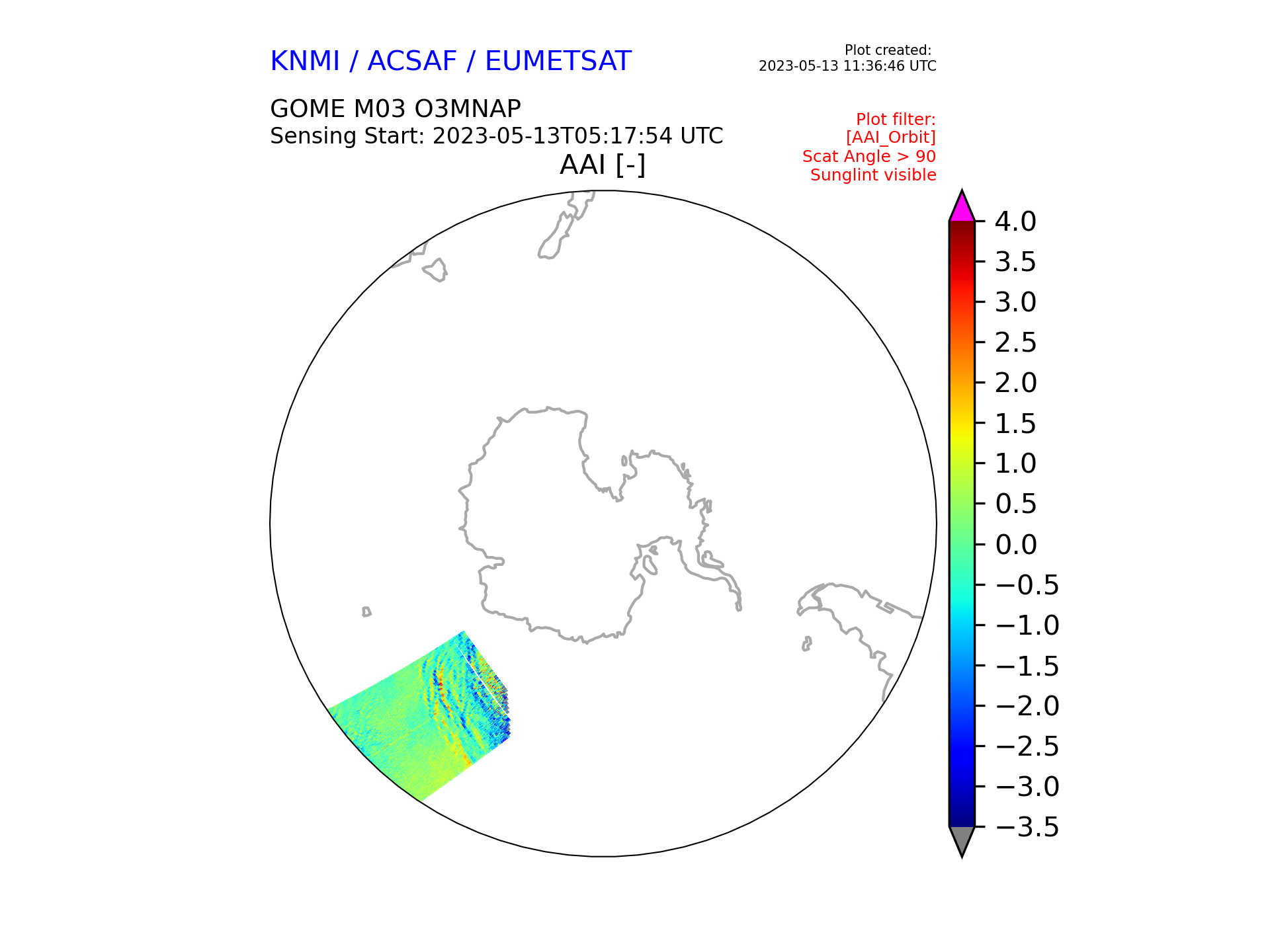 AAI Orbits. Date = 2023-5-13These images show the AAI from the PMDs as the individual orbits. |