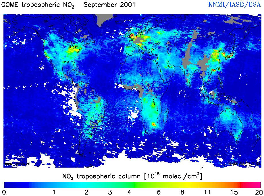 Total and Tropospheric NO2 of September 2001
