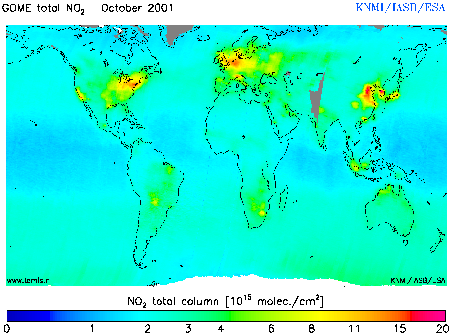 Total and Tropospheric NO2 of October 2001