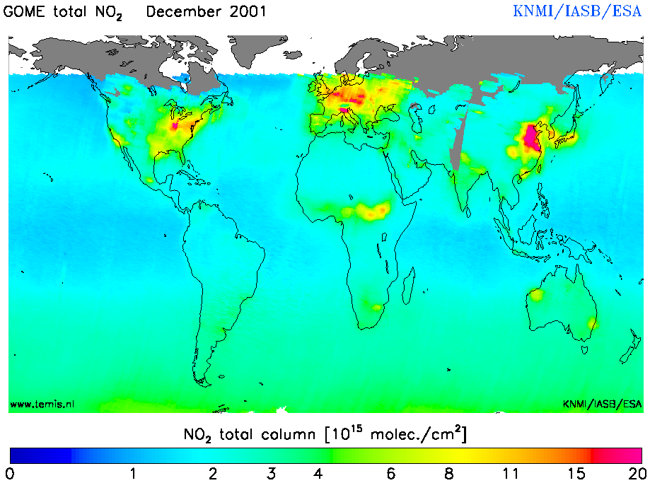 Total and Tropospheric NO2 of December 2001