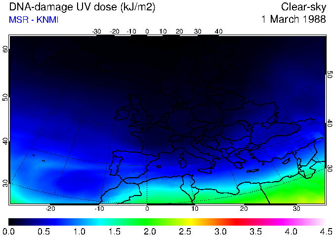 DNA-damage UV dose of 01 March 1988