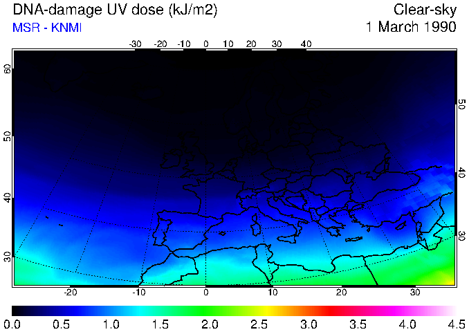 DNA-damage UV dose of 01 March 1990