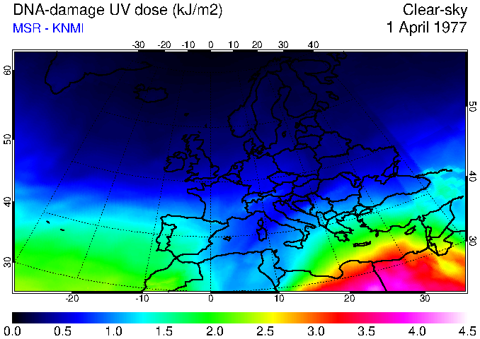 DNA-damage UV dose of 01 April 1977
