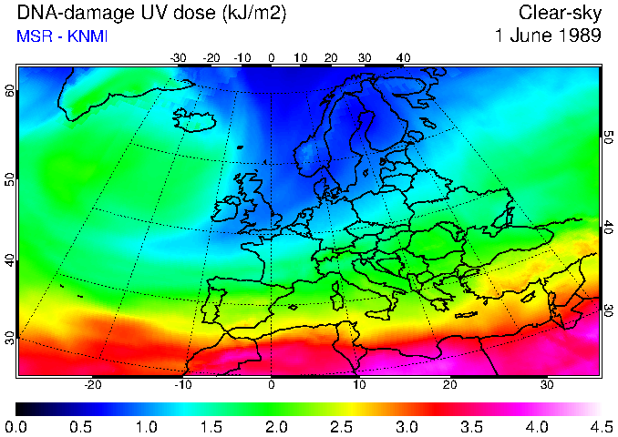 DNA-damage UV dose of 01 June 1989