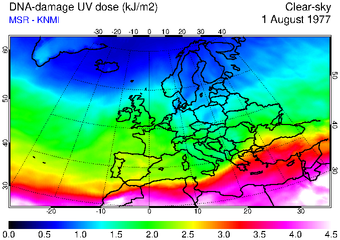DNA-damage UV dose of 01 August 1977