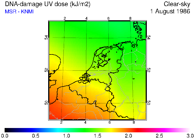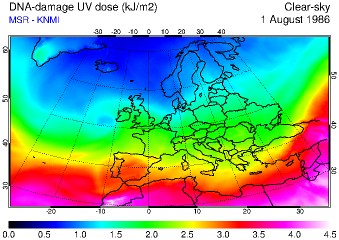 DNA-damage UV dose of 01 August 1986