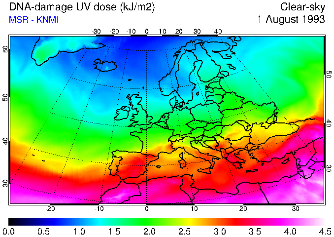 DNA-damage UV dose of 01 August 1993