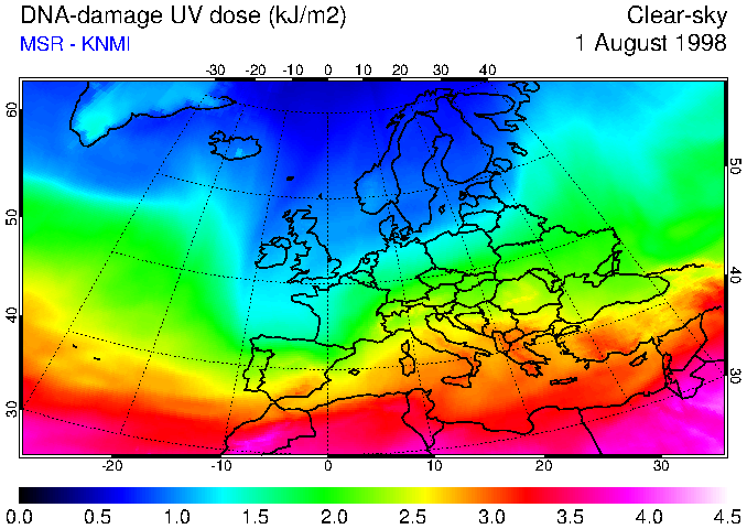 DNA-damage UV dose of 01 August 1998