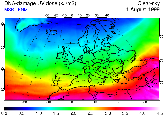 DNA-damage UV dose of 01 August 1999