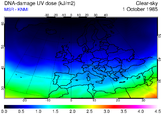 DNA-damage UV dose of 01 October 1985