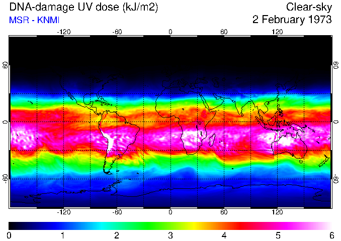 Daily UV dose:   erythemal  |  vitamin-D  |  DNA-damage