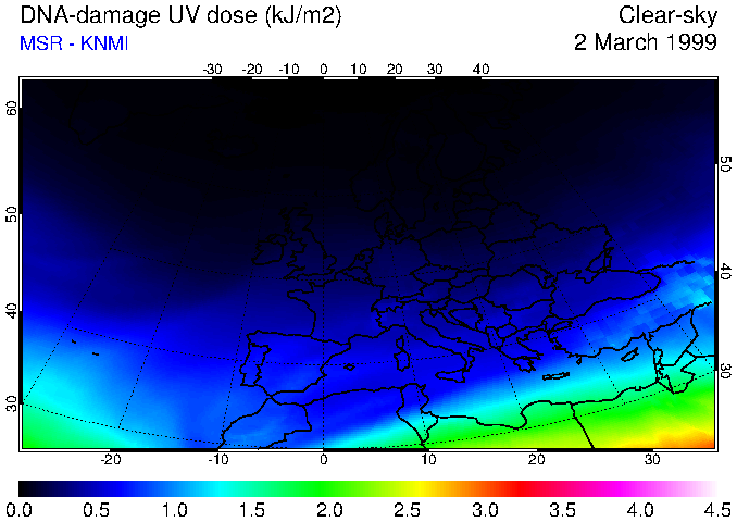 DNA-damage UV dose of 02 March 1999