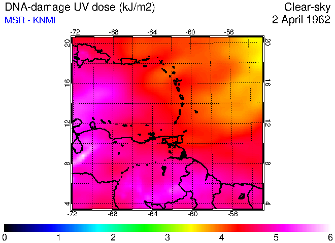 Daily UV dose:   erythemal  |  vitamin-D  |  DNA-damage