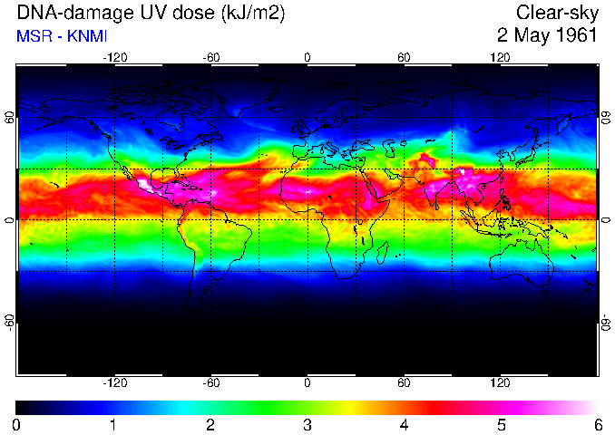 Daily UV dose:   erythemal  |  vitamin-D  |  DNA-damage