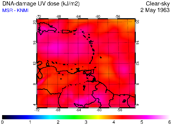 Clear-sky UV index:   erythemal