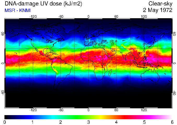 Daily UV dose:   erythemal  |  vitamin-D  |  DNA-damage