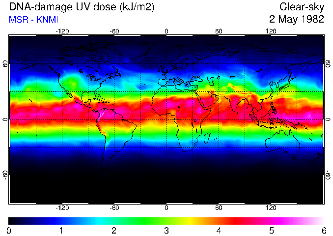 Daily UV dose:   erythemal  |  vitamin-D  |  DNA-damage
