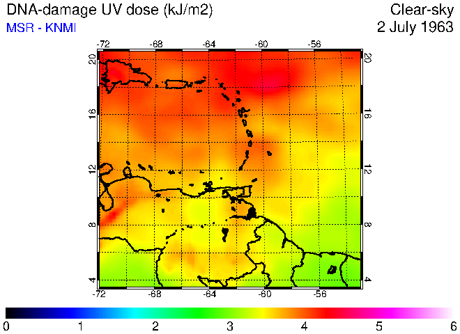 Clear-sky UV index:   erythemal