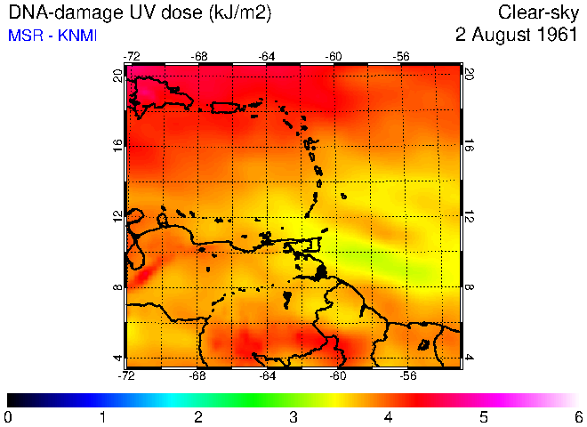 Daily UV dose:   erythemal  |  vitamin-D  |  DNA-damage