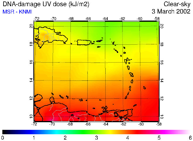 Clear-sky UV index:   erythemal