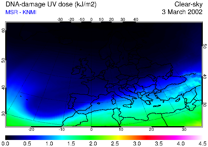 DNA-damage UV dose of 03 March 2002