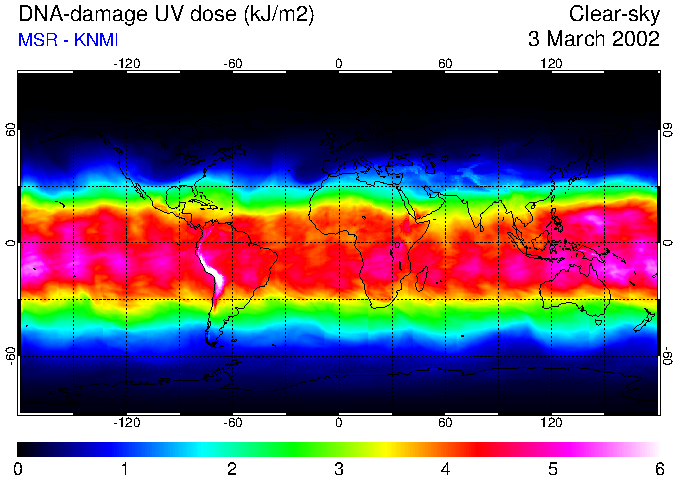 Daily UV dose:   erythemal  |  vitamin-D  |  DNA-damage