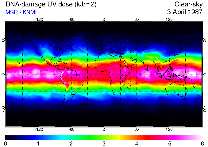 Daily UV dose:   erythemal  |  vitamin-D  |  DNA-damage