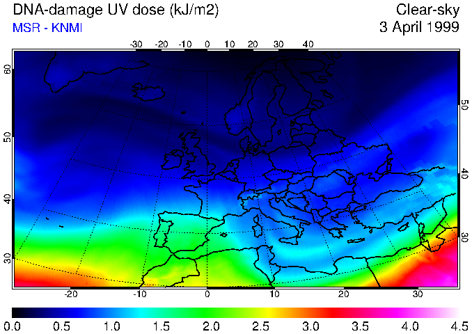 DNA-damage UV dose of 03 April 1999